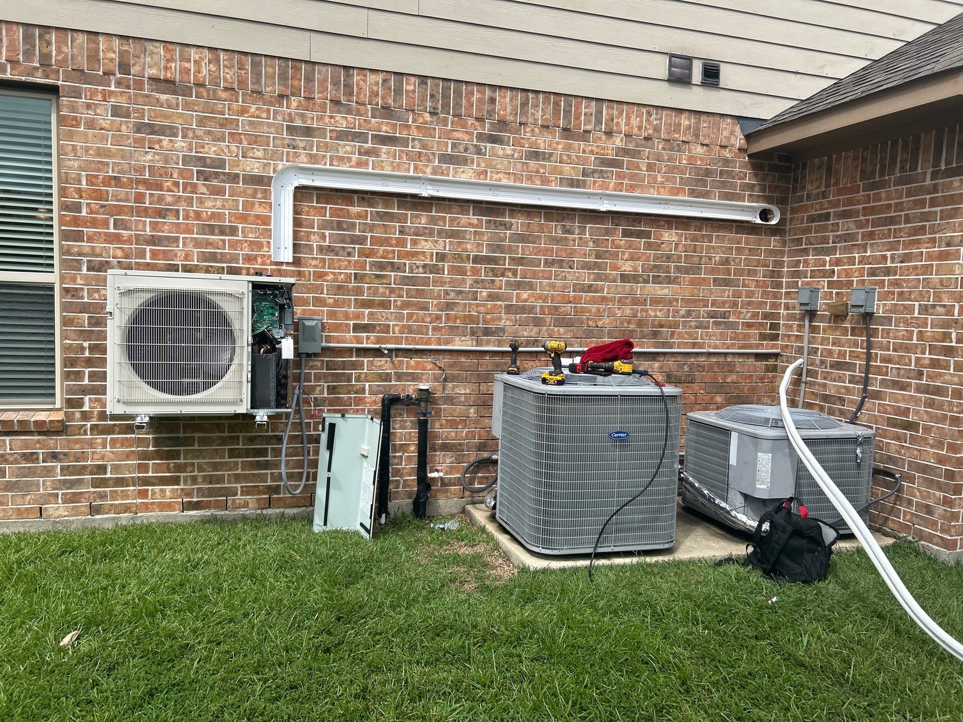 Customer in Humble, Texas wanted to transform his unconditioned garage into a very comfortable home workout room to exercise in. We selected the Number One Consumer rated 20 + SEER2 Mitsubishi Two Zone Heat pump, so he will have the perfect comfort year around.