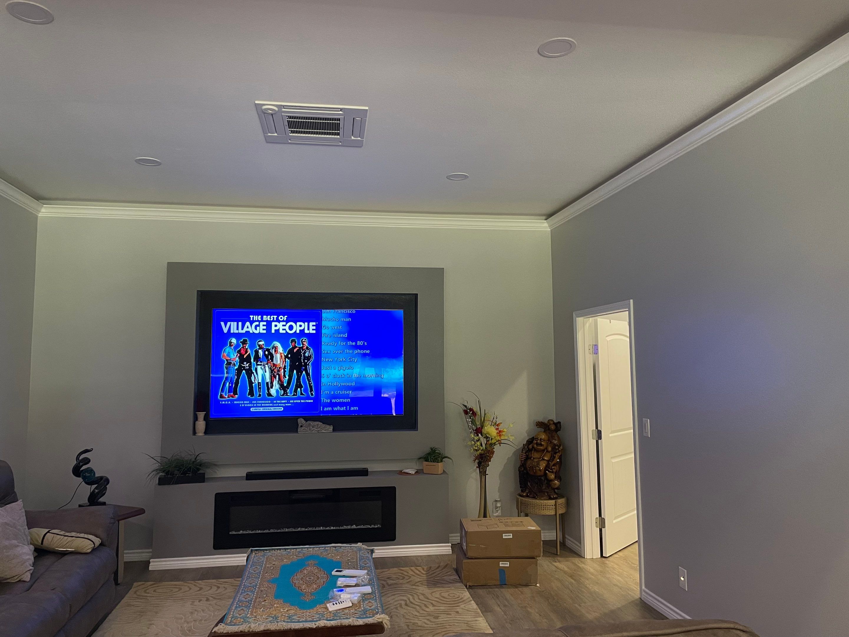 To suit different interior spaces and the Barn dominium layout, we used a combination of wall-mounted indoor units and four-way ceiling cassettes. Wall mounts were selected where wall space and room layout made them the best fit. Four-way ceiling cassettes were installed in larger open areas where even airflow distribution was important. The mix of head types gave the homeowner the flexibility he wanted for both comfort and aesthetics.